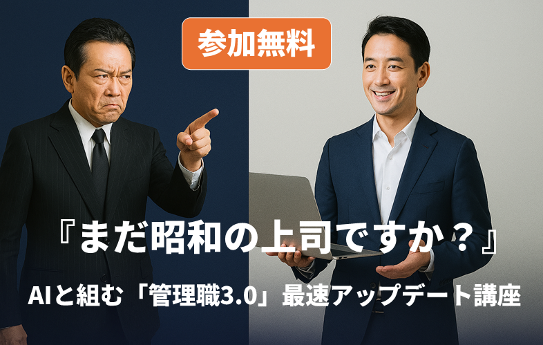 難易度:★ 無料【参加無料】『まだ昭和の上司ですか?』―AIと組む「管理職3.0」最速アップデート講座