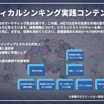 - ・実際のビジネス上の課題をクリティカルシンキングで解決する
