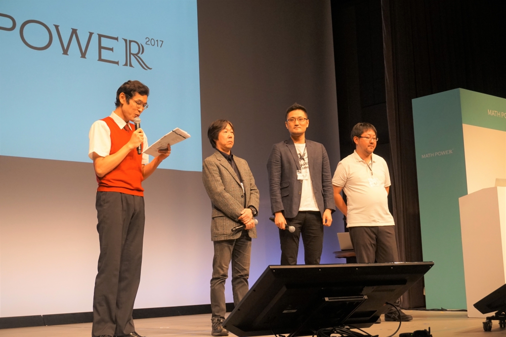 かっこいい作図ムービーで、始まりました、数学の祭典MATH POWER 2017!よしもとクリエイティブ・エージェンシー所属の現役高校数学教師タカタ先生が総合司会進行を務めます。主催者から1人ずつ登壇しての挨拶からスタート。ニコ生では「去年から待ってた」の声。開催者冥利に尽きますね!これから32時間、頑張っていきます!
