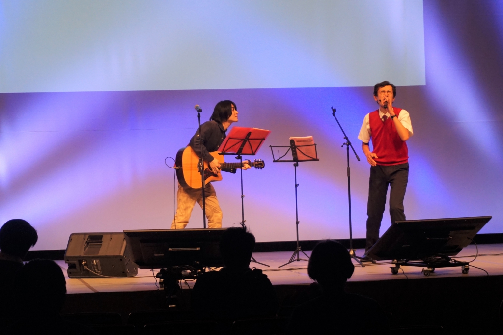 総合司会のタカタ先生が、数学漫才、数学ラジオ、数学ソングという授業(?)を展開。アンコールでは公式ソング狙いで作ったという「広がれマスパワー」を初披露。印象に残る親しみやすい楽曲で、会場もニコ生も「いえーい」と盛り上がっていました。