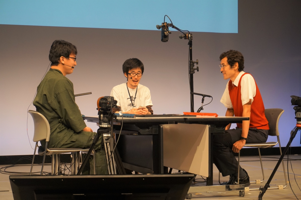 スパイラルホール(東京、青山)で開催された本イベントの模様はライブでニコニコ生放送で中継されました。ステージには大きなスクリーン、カメラ3台、本格的な音響設備、舞台転換をこなすスタッフ。さらにTeX書式の数式のコメント書き込みが可能。まさに数学好きのツボをくすぐる仕掛けが満載でした。