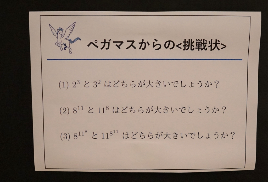 ロマ数会場に張り出される恒例の数学問題です。皆さんもチャレンジしてみてください!