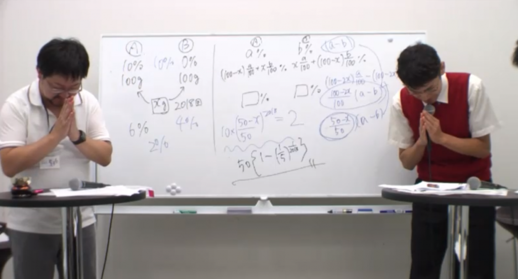 32時間続いた数学のお祭りのエンディングは、2つの耐久企画の結果発表から始まりました。