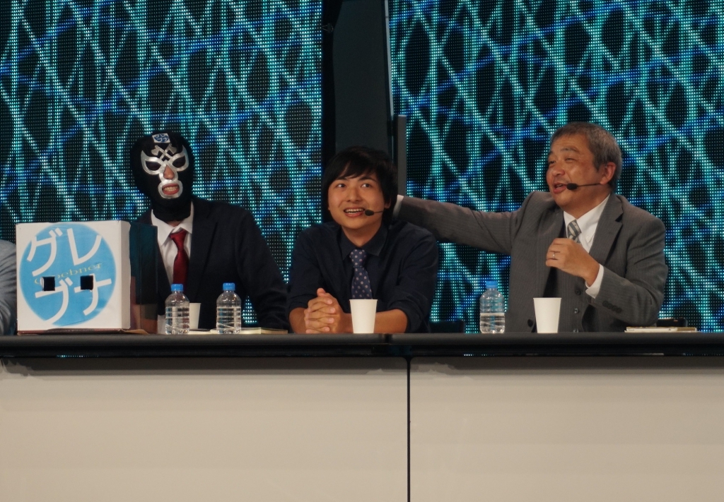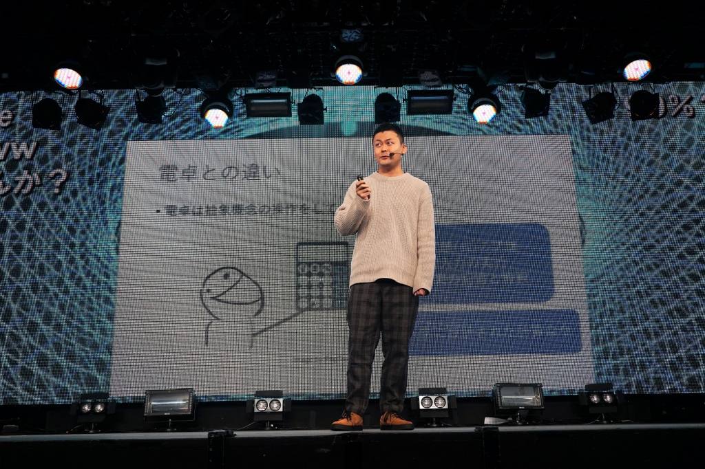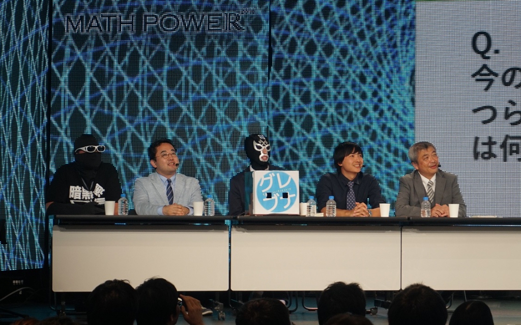 Youtuberの鈴木貫太郎さん、ヨビノリたくみさん、twitterのbotのグレブナー基底大好きbotさん、可換環論botさん、そして謎の組織「暗黒通信団」の下っ端のシさんを迎え、パネルディスカッション形式でその生態を探っていきました。数学的な話題はほとんど扱っていないのですが、登壇者同士が突然叩き合いをしたり、ただおじさんがお酒を飲みながら歌を歌う動画が流れたりと、カオス理論を感じさせる企画となりました。司会は弊社の松中が務めました。すべてのメンバー非常にキャラが濃い中で「司会が一番やばい。」というコメントをたくさん頂きましたが全然そんなことはありません。