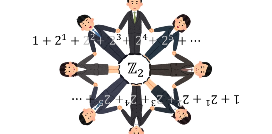 8人の場合、最初の1周で1,3,5,7が座ります。この時点で残っているのは2,4,6,8の4人です。つまり、4人の場合に帰着できるわけです。これは一般の2の冪乗人の場合にも同じことが言え、最終的には「スタート地点の1つ前」の番号が残ることがわかります。