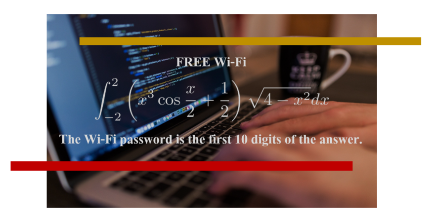 海外のあるホテルや大学のラウンジにおけるWi-Fiのパスワードがこれです。