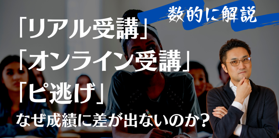 つまり、オンデマンドで出席の学生とリアルで出席している学生、そして、ピ逃げをしている学生それぞれでテストをしたところ、それほど平均点に差が出なかったということなんです。