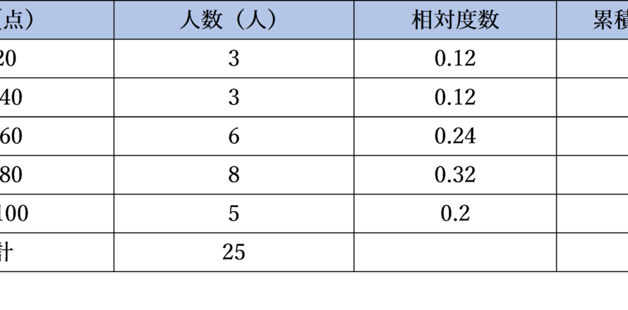 以下では、相対度数と累積相対度数を具体的に計算する方法について説明します。