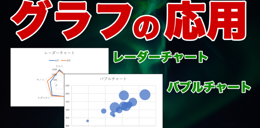 今回はデータの可視化の応用として、2つ以上の変数を持つデータの可視化するバブルチャートと、データのバランスを見るレーダーチャートを扱っていきます。