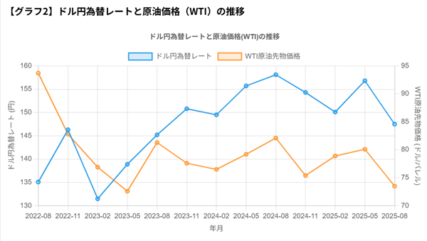 【グラフ2】ドル円為替レートと原油価格(WTI)の推移
