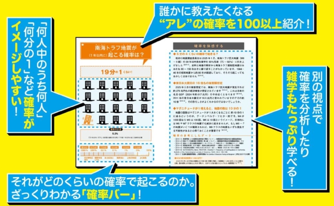 単体で聞くと「へえ!」で終わってしまう話も、本書では100以上の確率を比較できるようにしました。
