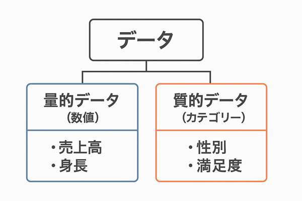 量的データ(数値で表せるもの):売上金額、身長、テストの点数など