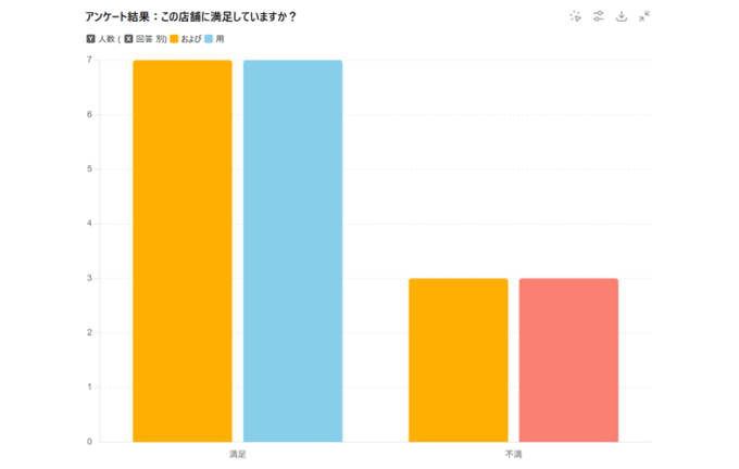 ▶ 棒グラフで「満足70%・不満30%」と表示され、改善の余地が一目で分かる
