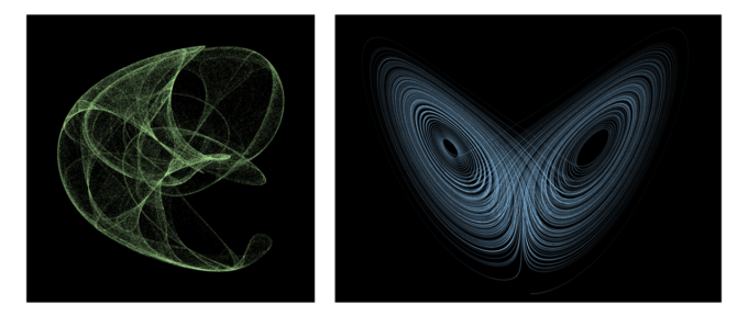 数学アートのハイライトの一つが、コンピューターの力を借りて可視化される複雑なパターンです。例えば、一部分を拡大しても全体と同じ形になる「フラクタル」(例:ジュリア集合)や、複雑なシステムが落ち着くパターンである「アトラクター」(例:カオスから生まれる蝶の羽のようなローレンツ・アトラクター)などがあります。