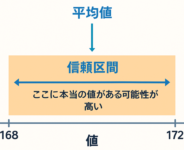 ・信頼区間が広い=結果がまだ不確か(例:165〜175cm)。