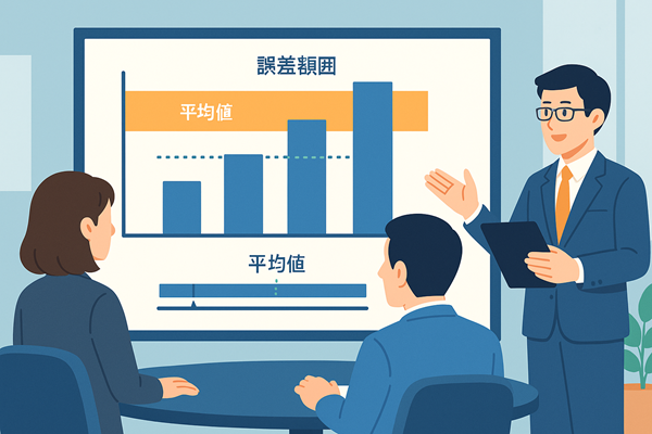 ・新商品のアンケートで「好意的に思う人が60%」と出ても、信頼区間が「55〜65%」なら安心して判断できる。