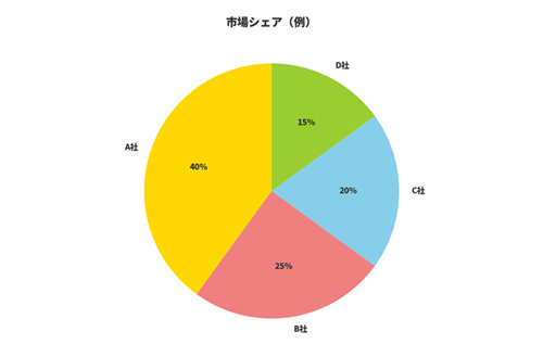 円グラフは全体に占める割合を表します。直感的で分かりやすい反面、正確な数値比較には不向きです。