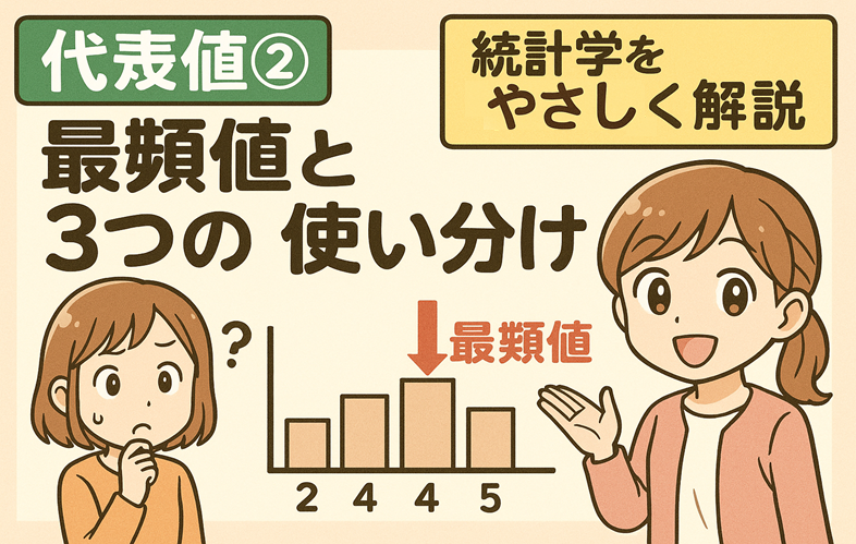 難しく思われる統計学をやさしく解説するシリーズ。代表値の第2回は「最頻値(さいひんち/モード)」です。前回は平均と中央値を紹介しましたが、現場では「いちばん多い値」が最も役に立つ場面があります。たとえばECの注文金額で“最もよく出る価格帯”や、アンケートで“最も多い回答”を把握したいとき——それが最頻値の出番です。