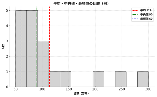 ■ 平均:全体の合計を人数で割った“ならし”の値。総額感や予算感をつかむのに良い。