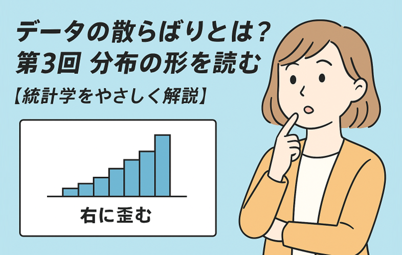 シリーズ「データの散らばりとは?」もいよいよ最終回です。第1回では範囲と分散、第2回では標準偏差を取り上げました。そして今回は、データ全体の“形”に注目して、分布のかたより(歪み)を読み取る方法を解説します。