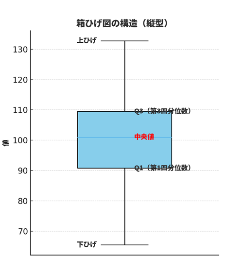 ■ 箱の両端:第1四分位数(Q1)と第3四分位数(Q3)