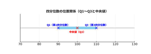 第1四分位数(Q1):下位25%の境目(データの下側の中心)