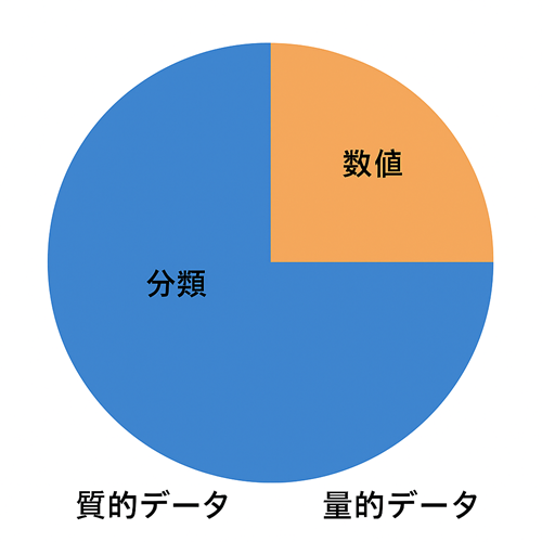 | 量的データ(数値データ) | 数字で表し、計算できるデータ | 売上金額・気温・年齢など |