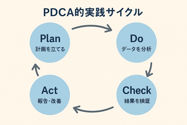 たとえば、社内会議で小さなデータ分析を共有したり、簡単な仮説を立てて報告してみるのも立派な実践です。行動を通じて、自分の課題や強みが明確になっていきます。