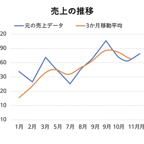 たとえば3月に急に売上が落ちたとしても、1月・2月の値を一緒に平均することで、「全体の傾向」はあまり変わりません。逆に、急上昇や急降下をそのまま信じると誤った判断につながることもあります。
