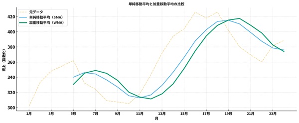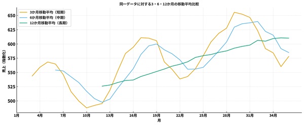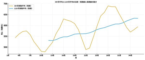 「3か月移動平均」と「12か月移動平均」、どちらも同じデータを扱っているのに、グラフの印象がまったく違う──そんな経験はありませんか?