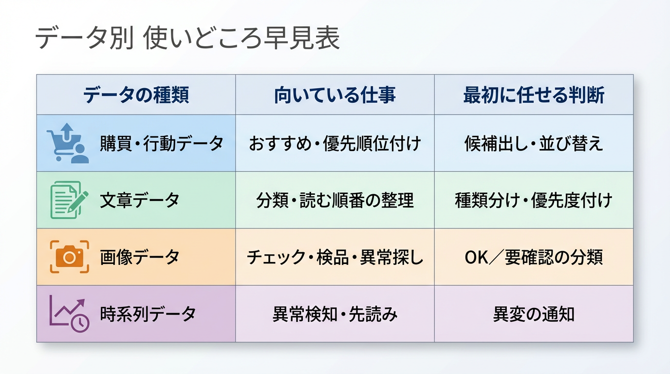 データ別:任せられる判断の早見表