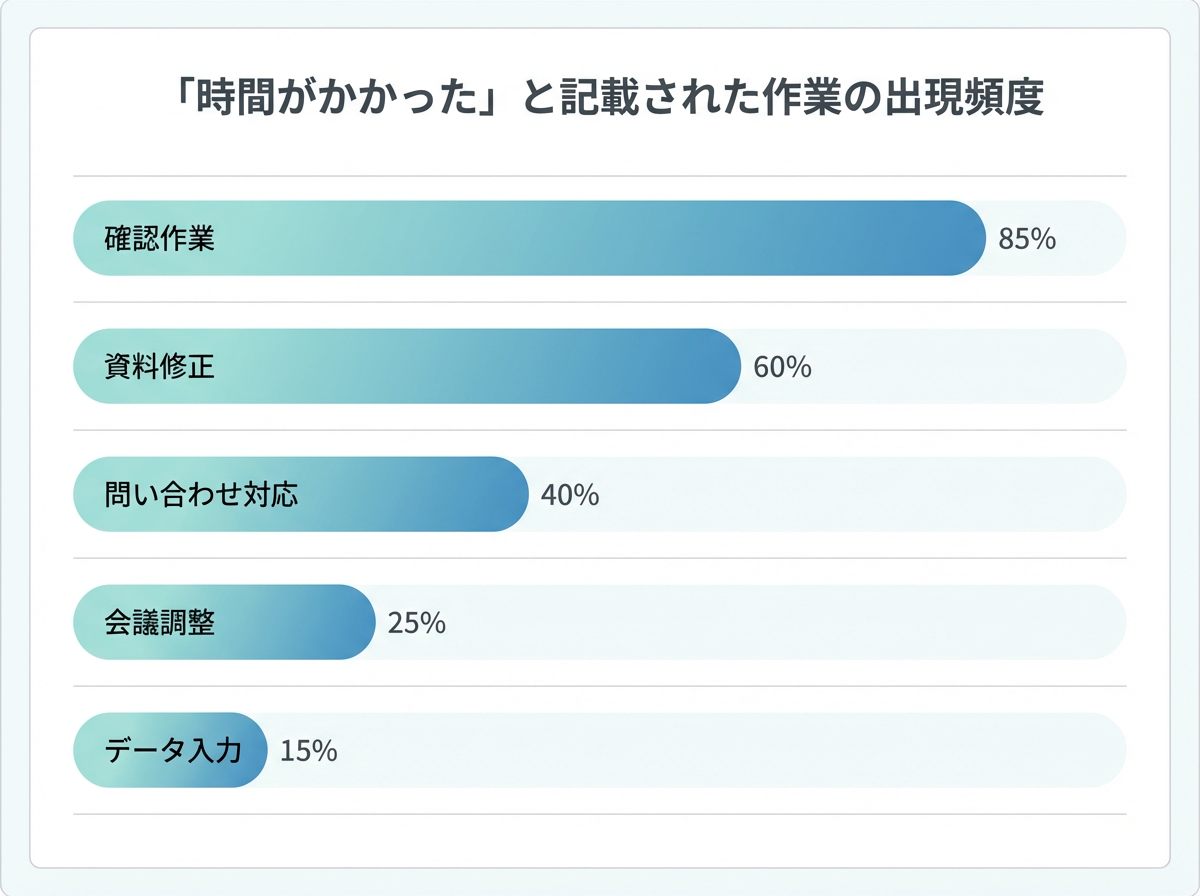 図1:日報内で「時間がかかった」と一緒に出てくる作業内容の頻度を示した棒グラフ