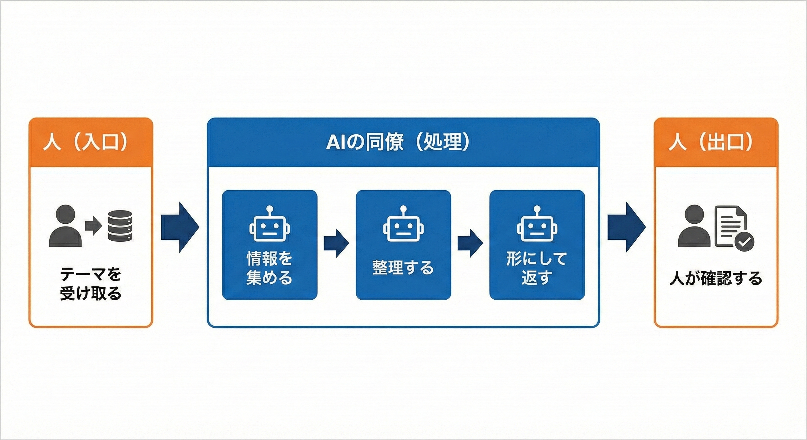 図1:『調べてまとめる仕事』を分解した業務フロー(人とAIの分担)