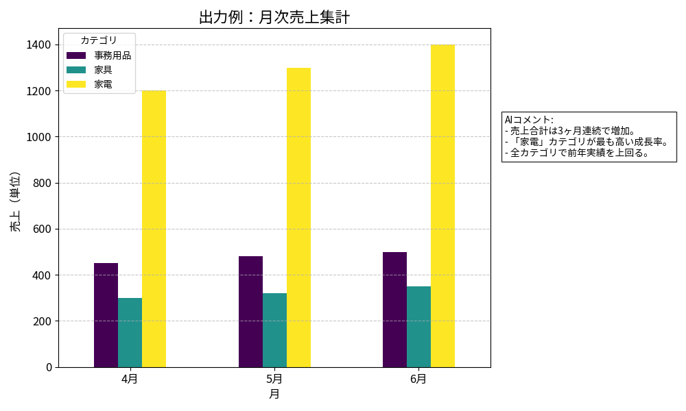 ・棒グラフ+コメント+アラート付き報告書の雛形を生成