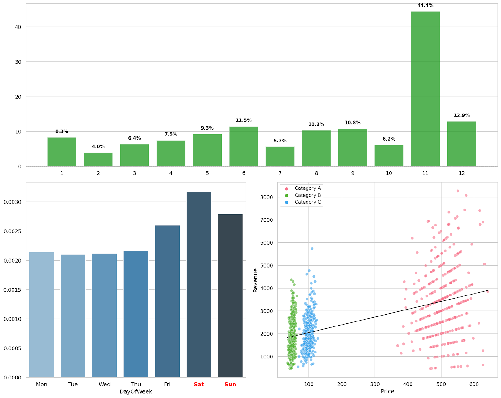 ・季節や曜日によって売上は変動している?