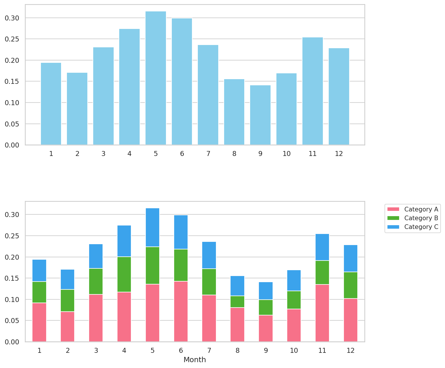 図1:生成AIで作成した月別棒グラフとカテゴリ内訳付きの積み上げ棒グラフ
