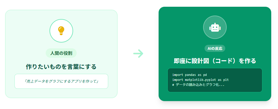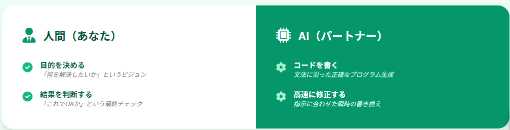 つまり、人とAIが役割を分担しながら開発を進める形になります。