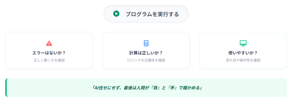 AIがコードを作成したら、次に行うのは「結果の確認」です。
