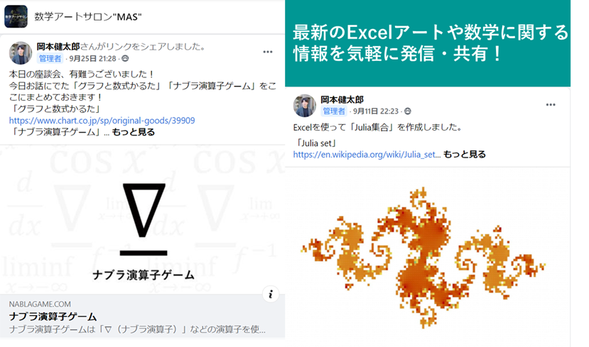 毎月1回、「数学座談会」というタイトルで、交流会を実施しています。数学やアートに関する情報交換や今後の切り絵展示の新情報、アートグッズのプレゼント企画なども実施しています!