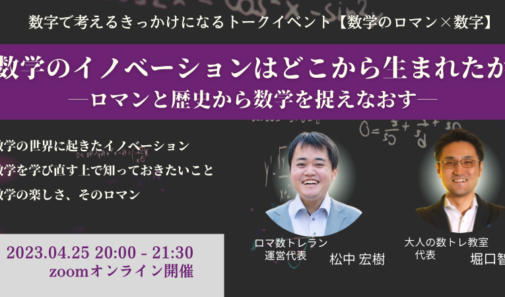 数学のイノベーションはどこから生まれたか―ロマンと歴史から数学を捉えなおす―(ゲスト:ロマ数トレラン 松中先生)【ニューメラシートークライブ】開催のお知らせ