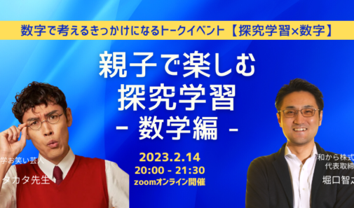 無料対談イベントのお知らせです。 親子で楽しむ探究学習―数学編―【ニューメラシートークライブ】 開催日時:2023/2/14 (火)20:00  …